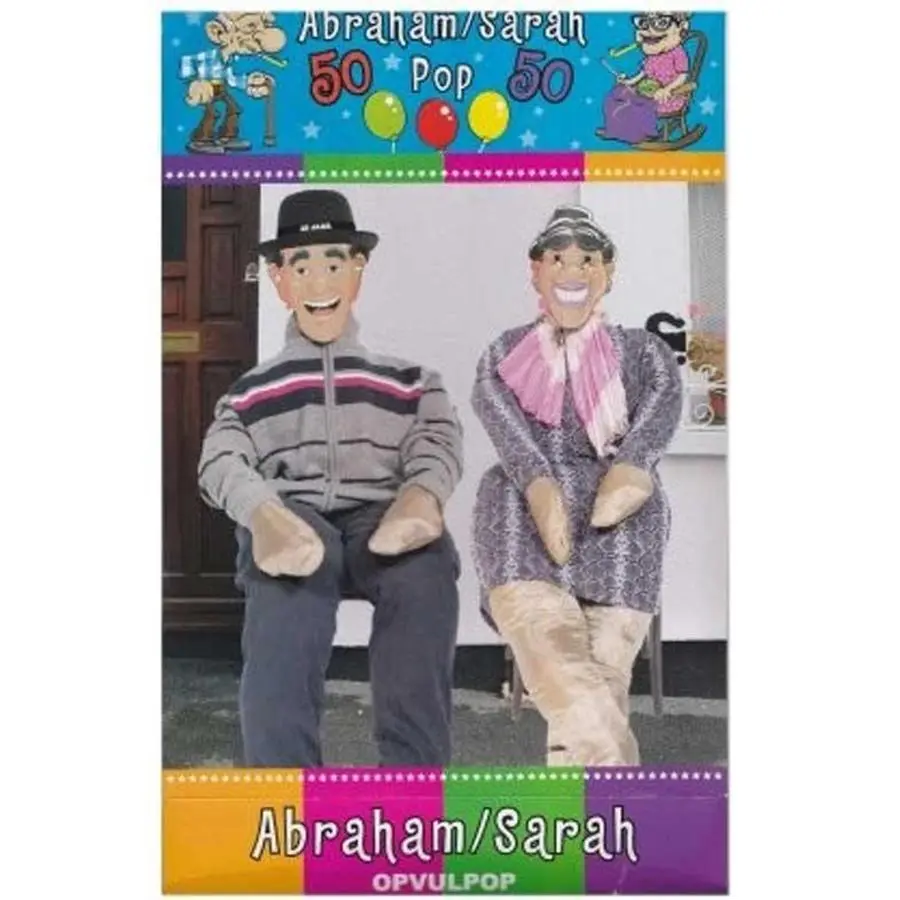 Deze universele pop kun je zelf aankleden als Abraham of als Sarah. Hij is dus voor beide te gebruiken. Het stoffen omhulsel kun je vullen met bijvoorbeeld kranten. Aan de zijkant van de Abraham of Sarah pop zit een rits waardoor je de pop makkelijk kunt vullen en weer kunt sluiten. Omdat de pop gemaakt is van stof kan hij zowel binnen als buiten gebruikt worden. Zet de pop een leuk masker op, trek hem of haar wat mooie kleren aan en creëer zo gemakkelijk een Abraham of een Sarah! De lengte van de Abraham of Sarah pop is 180cm.