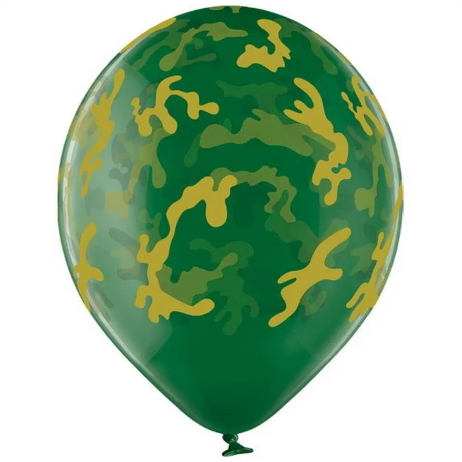 Zes ballonnen met een camouflage print. Doorsnede: 30cm. Perfecte decoratie voor een leger feestje.