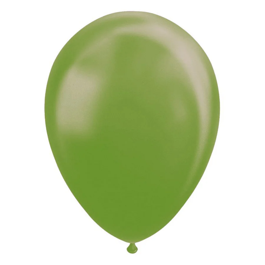 Een zak met 100 STERKE groene metallic ballonnen met een doorsnede van 30cm. Deze STERKE ballonnen zijn ook geschikt om met helium te vullen. De vliegduur van deze ballonnen met helium is ongeveer 10 tot 12 uur.