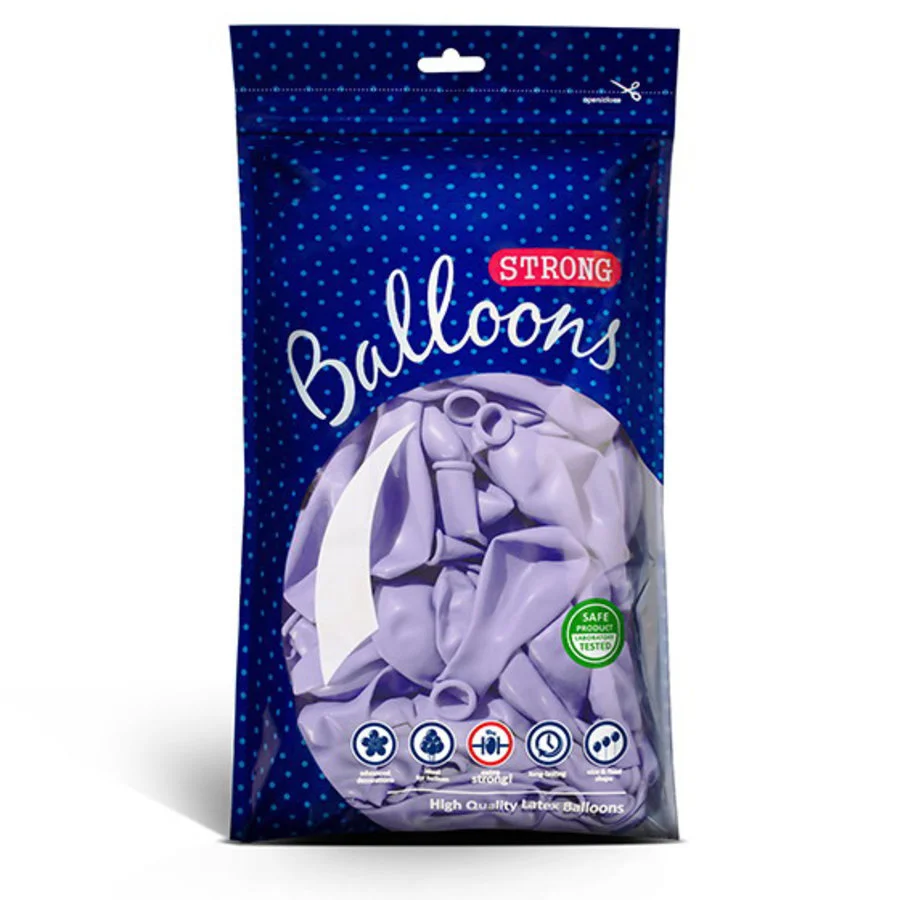 Een zakje met 100 STERKE lila kleurige ballonnen in een normaal formaat (27cm doorsnee). Deze STERKE ballonnen zijn ook geschikt om met helium te vullen. De vliegduur van deze ballonnen met helium is ca. 10 tot 12 uur. De kleur kan iets afwijken van de foto.