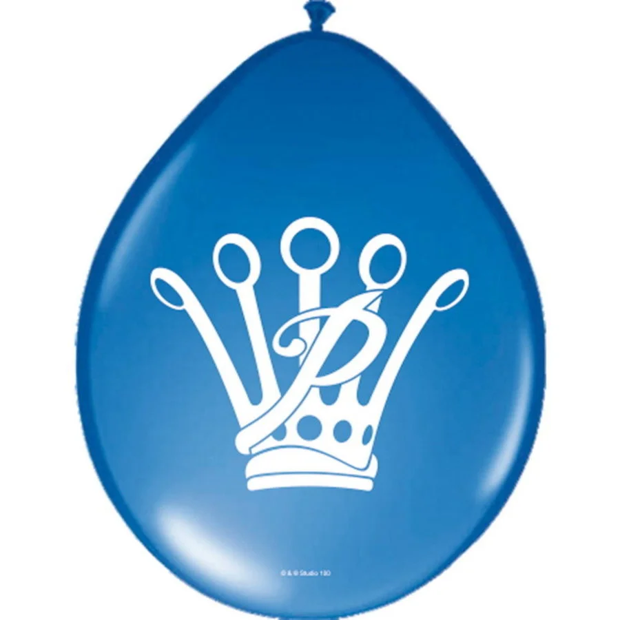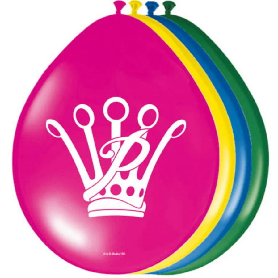 Een zakje met 8 ballonnen bedrukt met een kroontje. Doorsnede: ongeveer 30 cm. Leuk voor een prinsessen feestje.