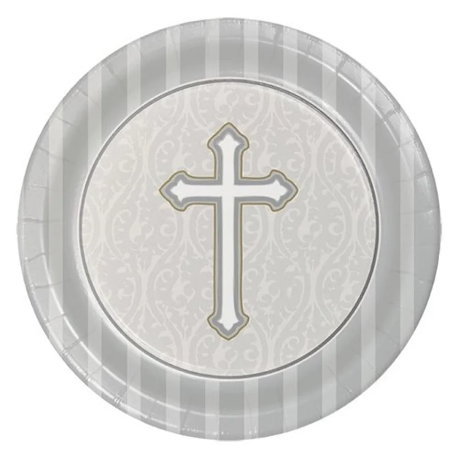 Een pakje met 8 kartonnen bordjes bedrukt met het Kruis. Erg toepasselijk voor kerkdiensten, jongeren events, vrouwenavonden, doopfeesten, verjaardagen of andere christelijke themafeesten. Doorsnede: 22.2cm.