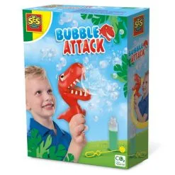 Deze happige dino heeft één doel en dat is alle bellen kapot bijten! Met de 200 ml Mega bubbles bellenblaas, ontwikkelt door SES, kunnen stevige bellen worden geblazen. Is de T-Rex sterk en snel genoeg om ze allemaal op te eten?
