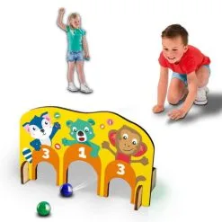 Dit knikkerspel met houten poortjes set bevat 3 houten poortjes, 8 knikkers en een handige bewaartas. Ook een scorekaart en 2 mini knijpers zijn inbegrepen.