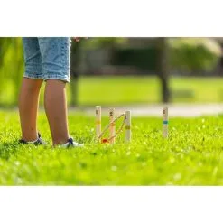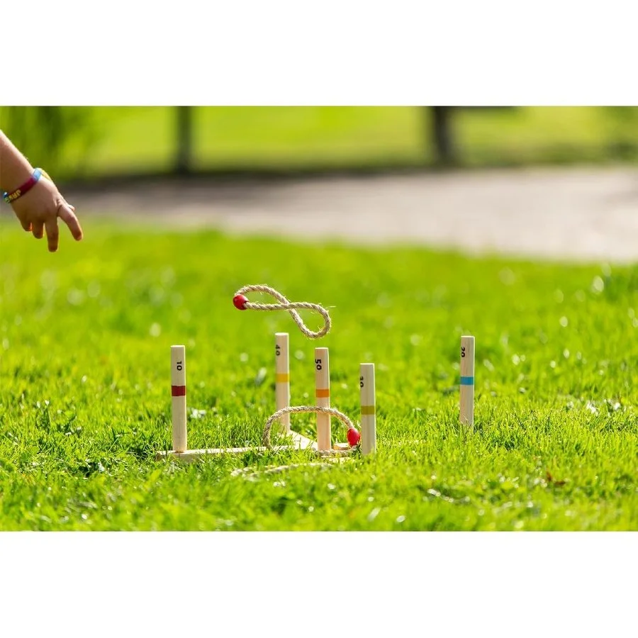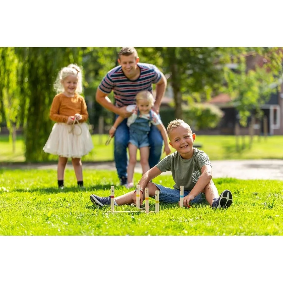 Ringwerpen in een outdoor versie om buiten te spelen. Versla jouw tegenstander door de ringen om de palen heen te gooien. De hoogste score wint! Inhoud: 5 ringen van touw en 5 palen van 15 cm hoog. Afmetingen: 49,5 x 49, 5 x 17 cm. Onze ‘Outdoor Play Games’ zijn van zeer goede kwaliteit en houdt kinderen even af van de telefoon of televisie. Bekijk de extra foto’s om een goede indruk te krijgen.Â