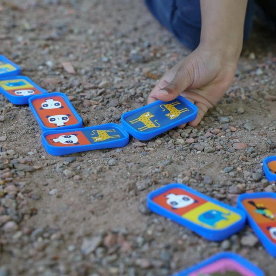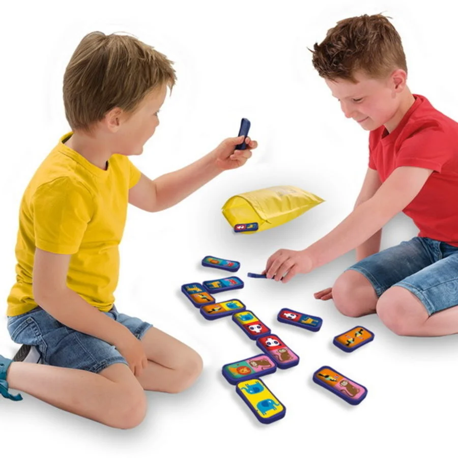 Verdeel alle dominostenen onder het aantal spelers. De jongste speler mag beginnen en daarna volgt de rest. Zorg ervoor dat de dieren op elkaar aansluiten en zo een mooie dominoreeks ontstaat. Met de handige bewaartas berg je de stenen eenvoudig op en kun je ze overal mee naartoe nemen! Ook leuk voor thuis als het regent of in de winter.