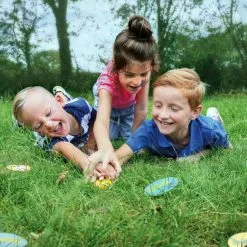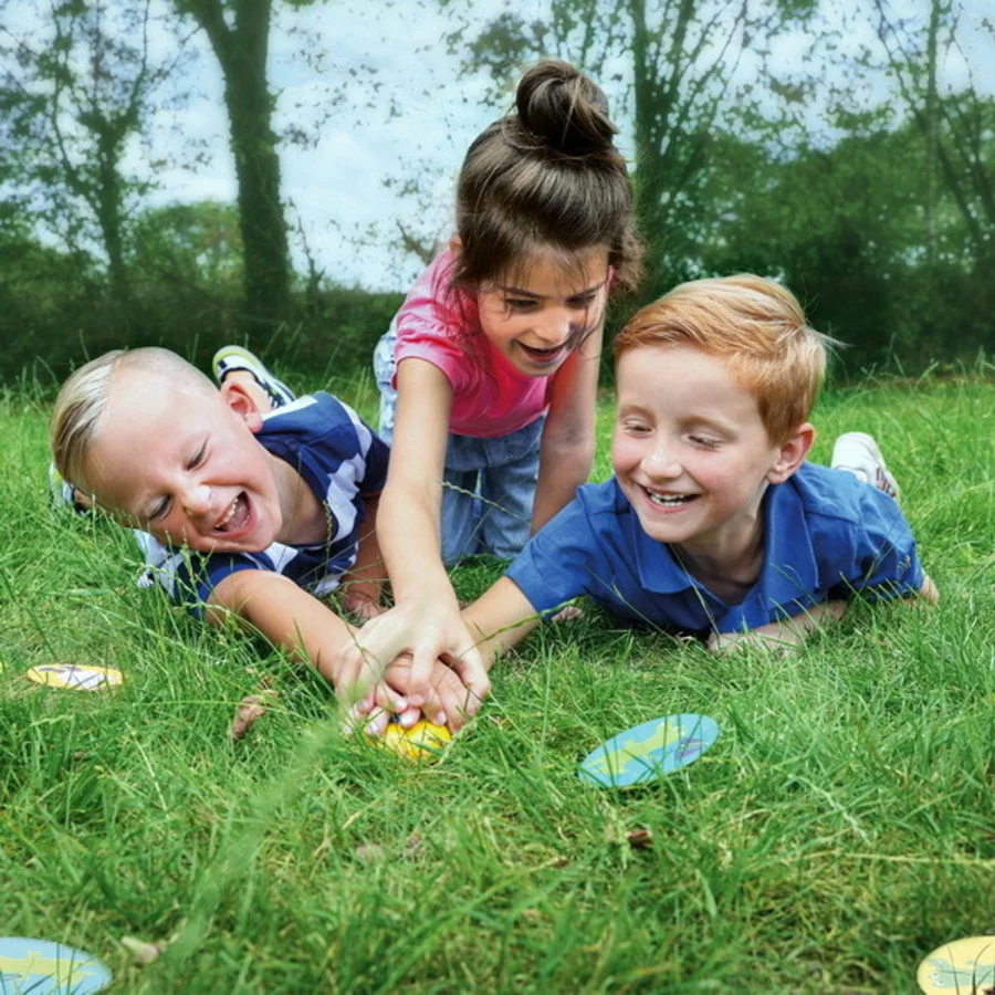 Dit spel is te spelen met al jouw vriendjes waarbij jij zelf het speelveld mag bepalen. En First to find is heel erg spannend! Leg de bel klaar en gooi met de dobbelstenen. Wat heb jij gegooid? Een oranje olifant met een strikje? Rennen! Zie jij hem liggen? Pak het kaartje op en sprint naar de bel. Wie verzamelt de meeste kaartjes? First to find is te spelen met het gezin of meerdere kinderen. De grootte van het speelveld is zelf te bepalen en het spel stimuleert samen buitenspelen.
