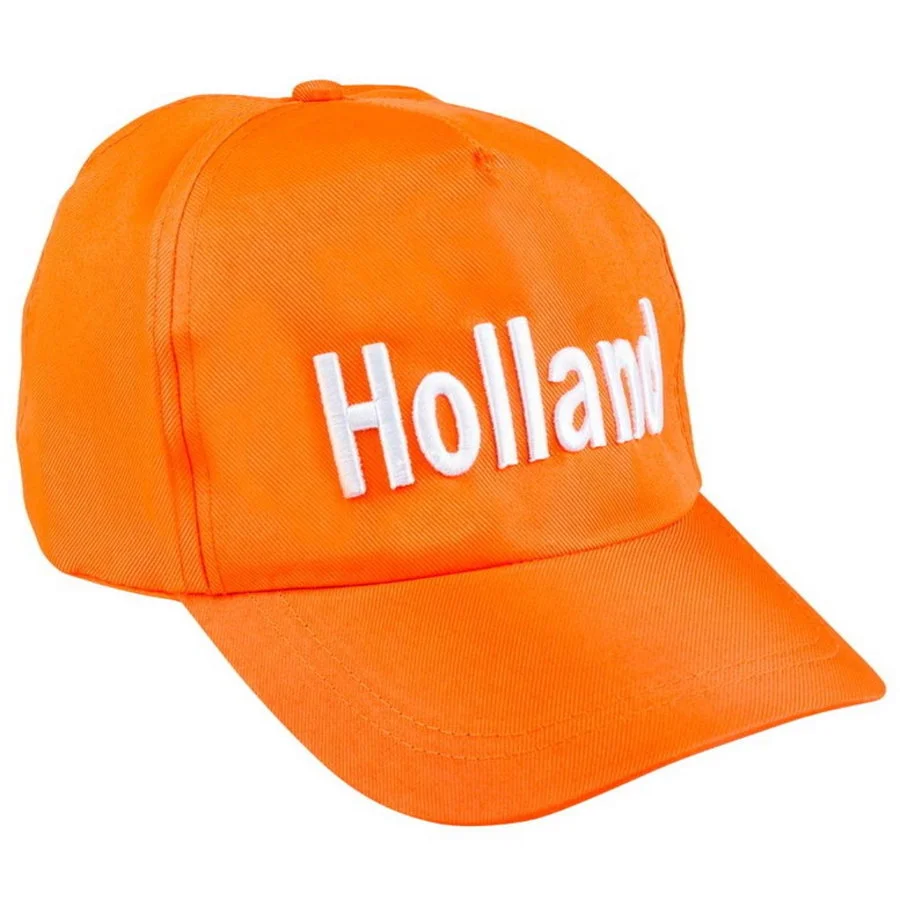 Een verstelbare oranje cap bedrukt met de tekst Holland. Leuk tijdens de voetbal. GOOOOOL !!