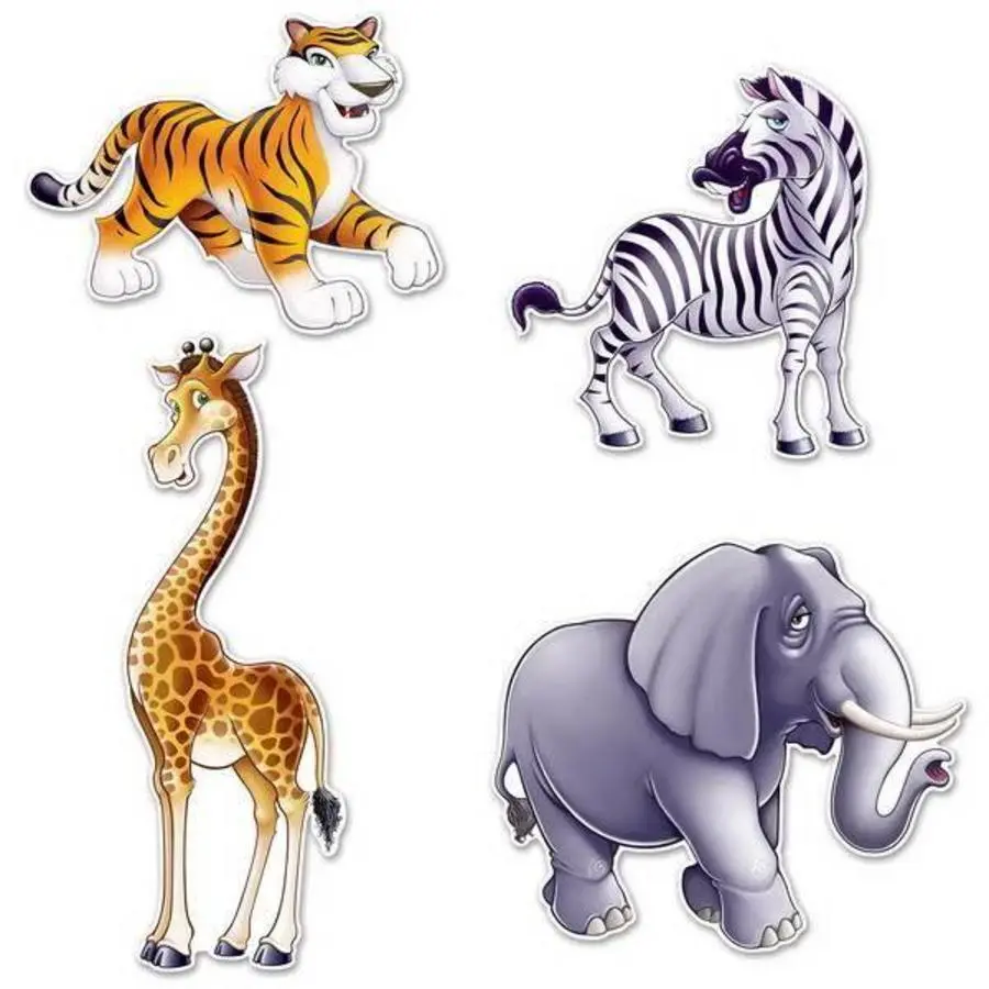 Een set met 4 grote decoraties van jungle dieren. Deze zijn aan beide kanten bedrukt. Afmeting: 39 tot 64cm!