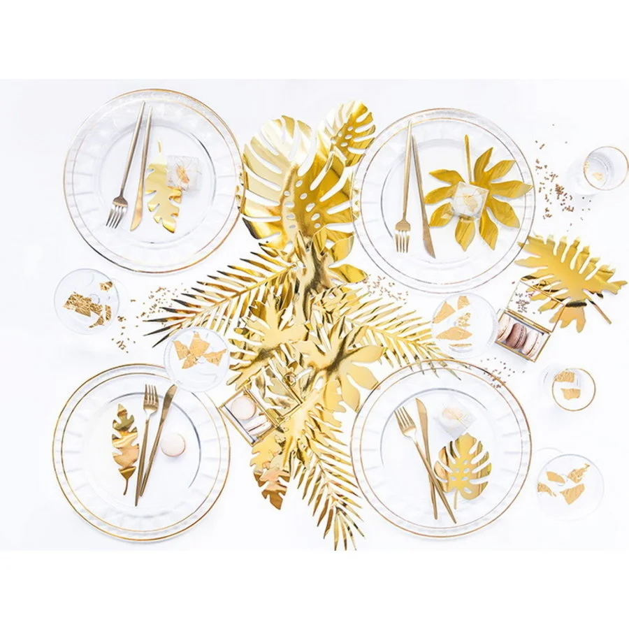 Een prachtige luxe set met goudkleurige palmbladeren in verschillende afmetingen. Mooi voor aan de wand of bijvoorbeeld op tafel tijdens het diner.