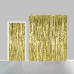 Een prachtig deurgordijn goudkleurig. Gemakkelijk aan het deurkozijn te bevestiging met het meegeleverde bevestigingsmateriaal. Dit gouden deurgordijn is een meter breed en twee meter lang. De glimmende folieslierten zorgen voor een feestelijke sfeer! Je kunt de deurgordijnen goed combineren met andere gouden versiering zoals ballonnen en slingers. Leuk voor bijvoorbeeld Oud&Nieuw maar ook geschikt voor andere stijlvolle party’s. De deurgordijnen zijn brandvertragend. Afmeting: 200 x 100cm.