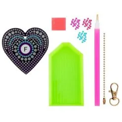 Een doosje met alle attributen om een Diamond Painting sleutelhanger met een prachtig hart te maken. In de doos zit een diamond painting hart, verschillende kleuren steentjes, een diamond painting pen, een wax blokje, een schudbakje, een ketting en een sleutelhanger. Geschikt voor kinderen vanaf 6 jaar.