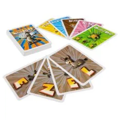 Ezelen van Clown Games is een grappig spel, waarbij de snelheid erg hoog ligt. Schuif de dierenkaarten door, totdat je vier dezelfde hebt. Pak dan snel een ezelpion van tafel. Dit mogen je medespelers ook doen, maar er is er eentje minder dan het aantal spelers. Wie het niet gelukt is een ezel te pakken, krijgt een ezelkaart met een letter. Zo ben je uiteindelijk de E…Z…E…L! Inhoud: 20 dierenkaarten (5 sets van 4 afbeeldingen), 20 EZELkaarten (5 x elke letter), 4 ezelpionnen en spelregels. Wordt geleverd in full-colour doosje. Geschikt voor 3 tot 5 spelers vanaf 6 jaar.