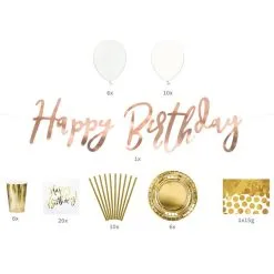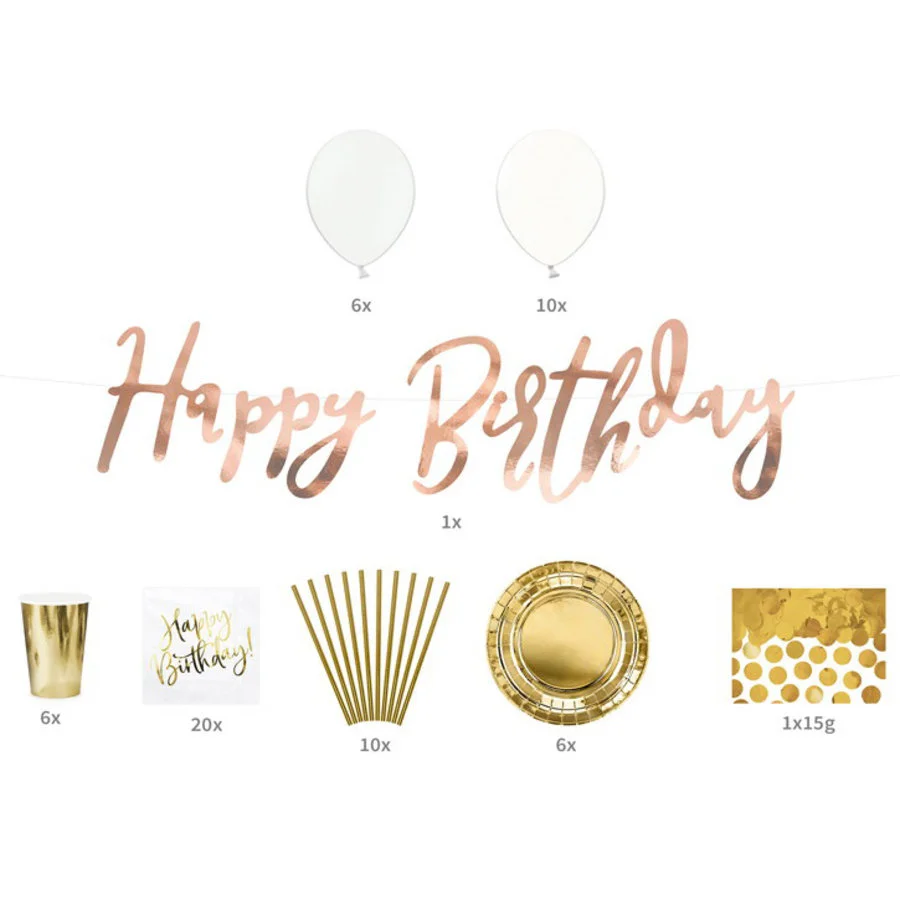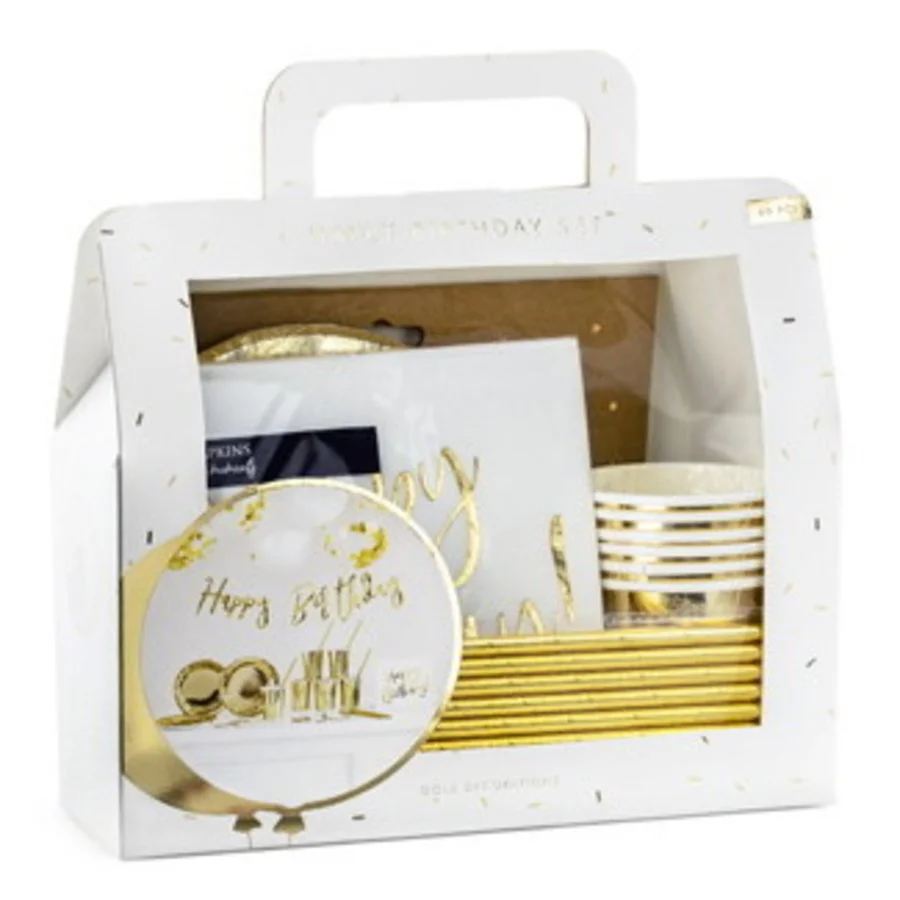 Een schitterend 60-delig stijlvol feestpakket voor iemand die jarig is. Prachtige bordjes, bekertjes, servetten en meer!