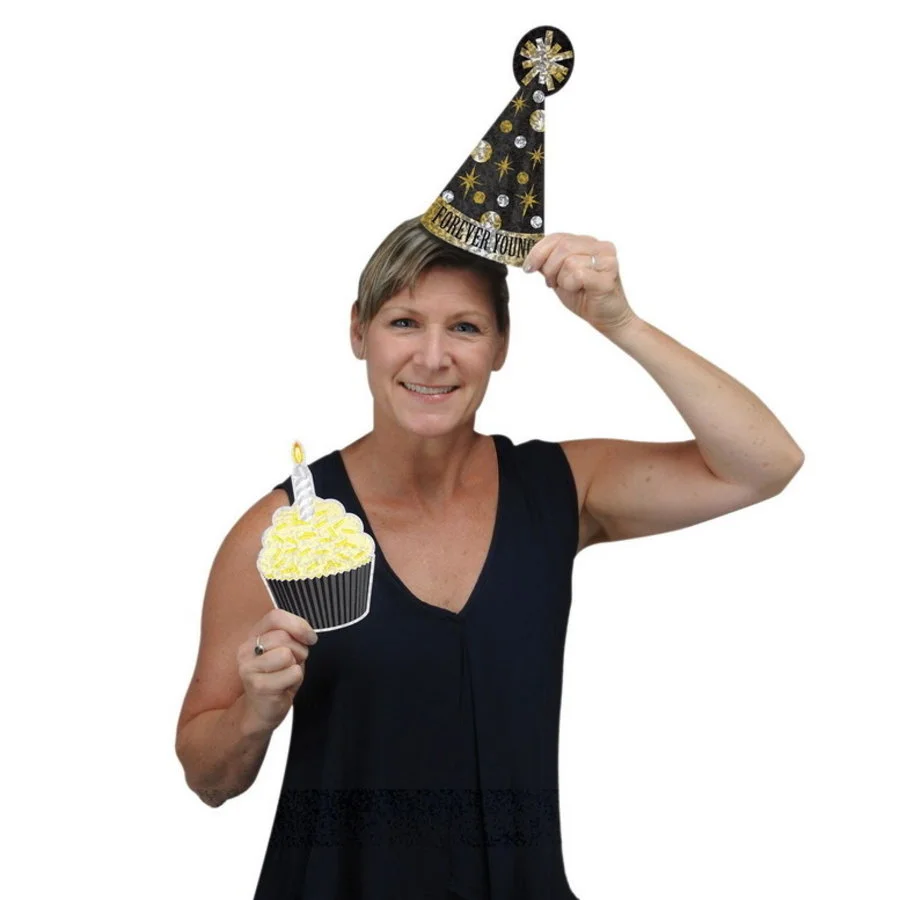 Een set met 12 prachtige glitter decoraties om in de hand te houden tijdens het foto’s maken. De kleuren goud, zilver en zwart maken deze decoraties extra stijlvol. Positieve teksten als Forever Young, Fabulous en Happy Birthday geven allen die op de foto gaan een lach op het gezicht. Afmetingen: 20cm tot 25cm. Wij wensen u veel likes met de prachtige foto’s die u gaat maken.