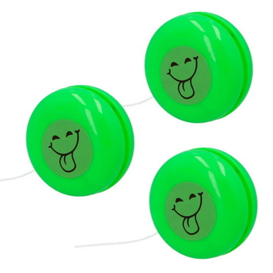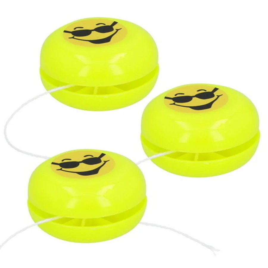 Een zakje met 18 kleine jojo’s om weg te geven aan het eind van een kinderverjaardag. Op de jojo’s zit aan beide kanten een sticker van een lachend gezichtje. Dat maakt de jojo’s extra vrolijk. Afmeting: 3.5cm.