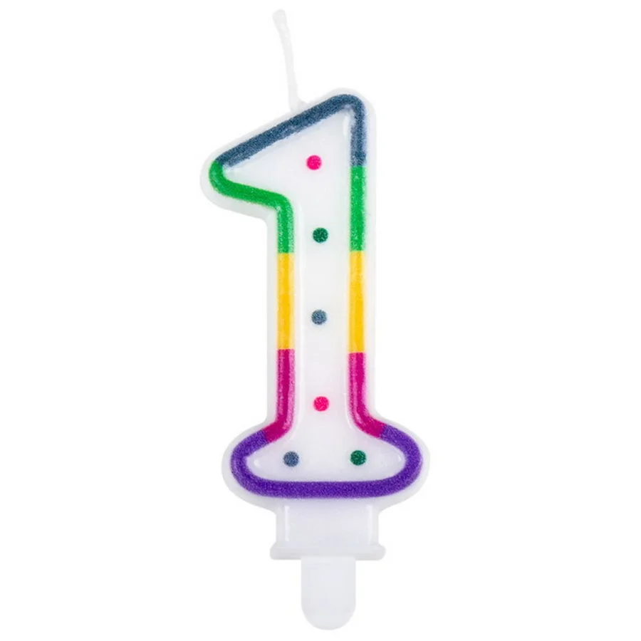 Zeg je verjaardag, zeg je taart! En vier je een eerste verjaardag feestje dan moet er natuurlijk ook een leuk kaarsje op de taart. Dan is deze 1 jaar verjaardagskaars erg leuk. Hij is uitgevoerd in de vorm van het cijfer 1 en heeft diverse kleuren, dus past overal bij. Combineer deze kaars met andere 1 jaar versieringen en het feest kan beginnen. Hoogte: 7.5cm.
