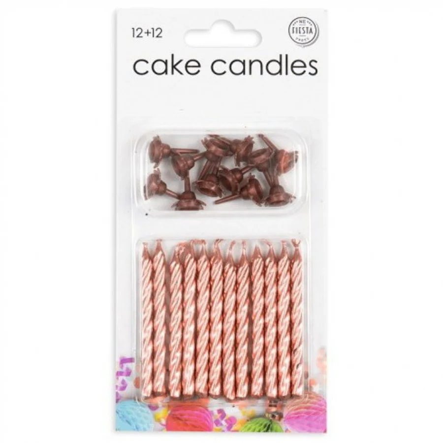 Kaarsjes Rosé Goud 12 Stuks Met Houdertjes