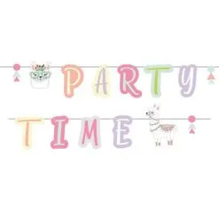 Een lama letterslinger met de tekst: PARTY TIME. Leuk voor een lama of Mexicaans feestje. Lengte: 240cm.