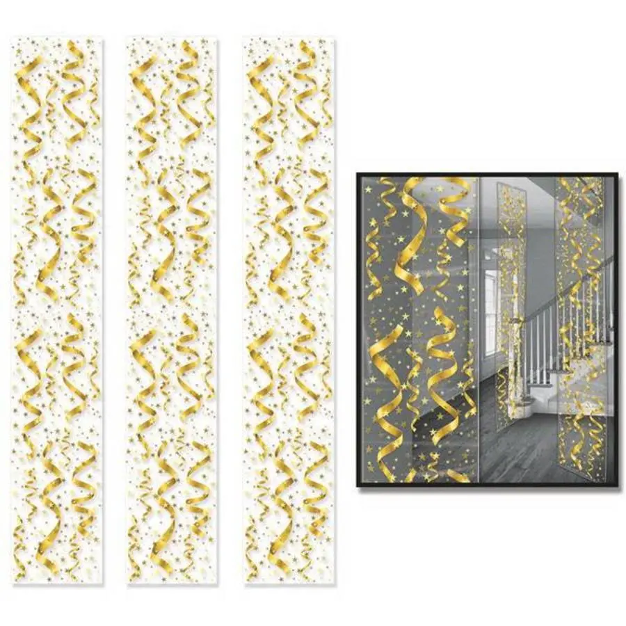 Deze Party Panels bestaan uit 3 lange doorzichtige stroken die bedrukt zijn met goudkleurige confetti en serpentine. Dit geeft het geheel een prachtige feestelijke uitstraling. Afmeting: 30 x 180cm. Een nieuwe stijlvolle manier van versieren.