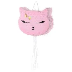 Een grote Pinata van een roze kat. Het Pinata oogmasker en de Pinata stok en een zak met 48 surprise cadeautjes kunt u ook bij ons bestellen. Vergeet u niet een filmpje te maken? Het zal u veel likes opleveren. Afmeting: 35cm x 27cm x 9cm.