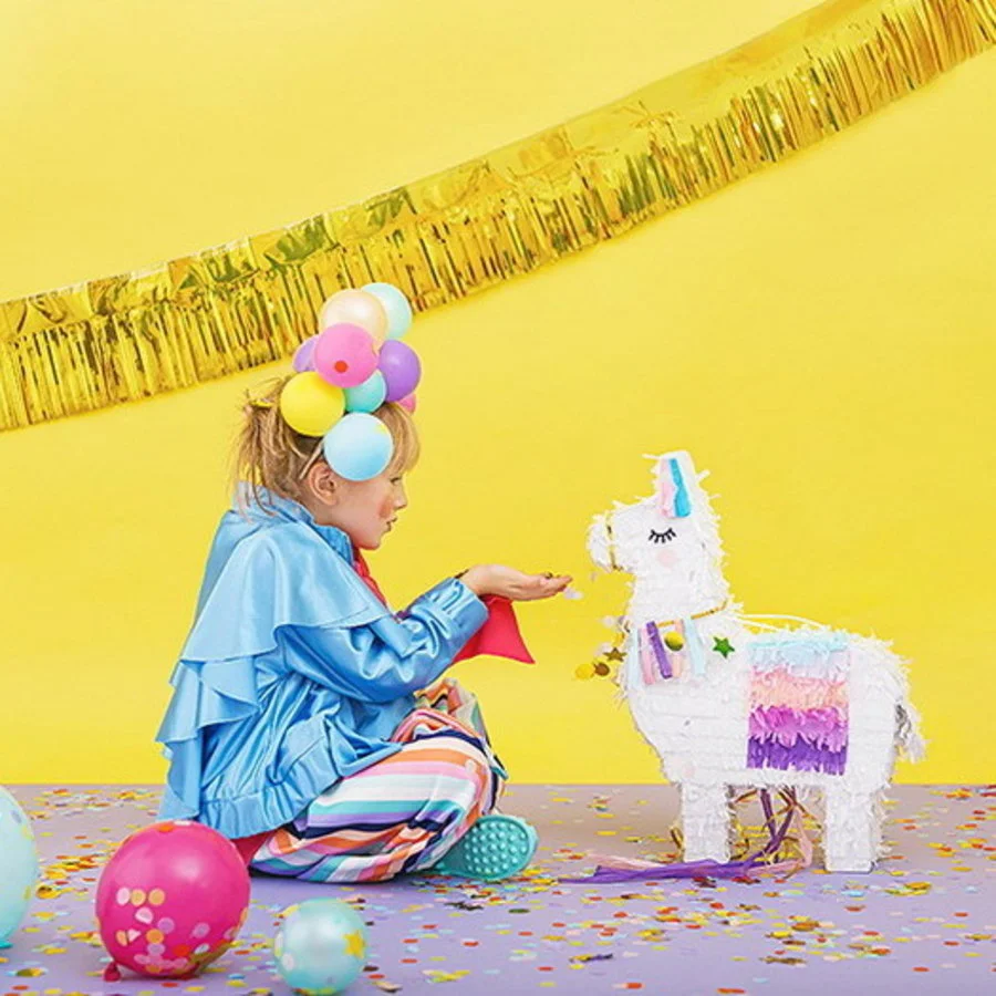 Een grote witte Pinata van een lama met pastel tinten. Het Pinata oogmasker en de Pinata stok en een zak met 48 surprise cadeautjes kunt u ook bij ons bestellen. Vergeet u niet een filmpje te maken? Het zal u veel likes opleveren. Afmeting: 50 x 32cm.