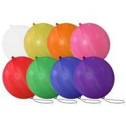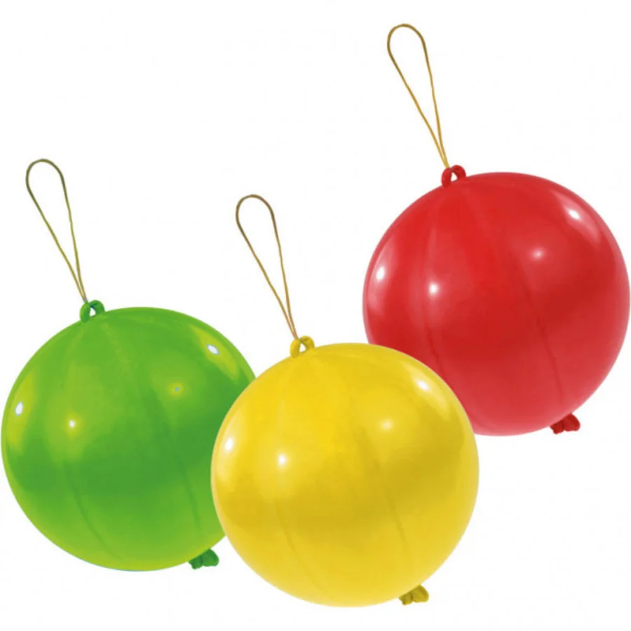 Een jumbo ballon met een elastiek eraan. Pak het elastiek en beweeg deze op en neer. De ballon zal als een soort boksbal tegen je hand aan stuiteren. Heel leuk voor kinderen of een kinderverjaardag. Wie kan het vaakst de ballon laten stuiteren? De ballonnen worden geleverd in willekeurige kleuren.