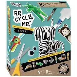Re-Cycle-Me Safari Adventures. Re-Cycle-Me gelooft in een wereld waarin kinderen en hun ouders zich meer bewust worden van de hoeveelheid afval die we allemaal produceren. Kinderen kunnen helpen dit te verminderen door te recyclen! Met deze doos kun je een leeuw, krokodil, aap, zebra, giraf, vogel, olifant en safaritruck maken. Het enige dat je uit je eigen kast nodig hebt is lijm, een schaar, een melkpak en een wc- en keukenrol. Wordt geleverd in full-colour doos. Prachtig om cadeau te geven. Geschikt voor kinderen vanaf 4 jaar.