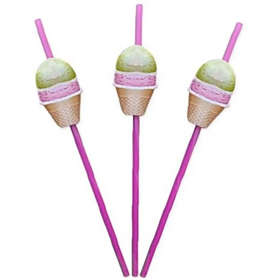 Een pakje met 8 rietjes met aan het rietje een decoratie van een ijsje. Lengte: 24 cm.