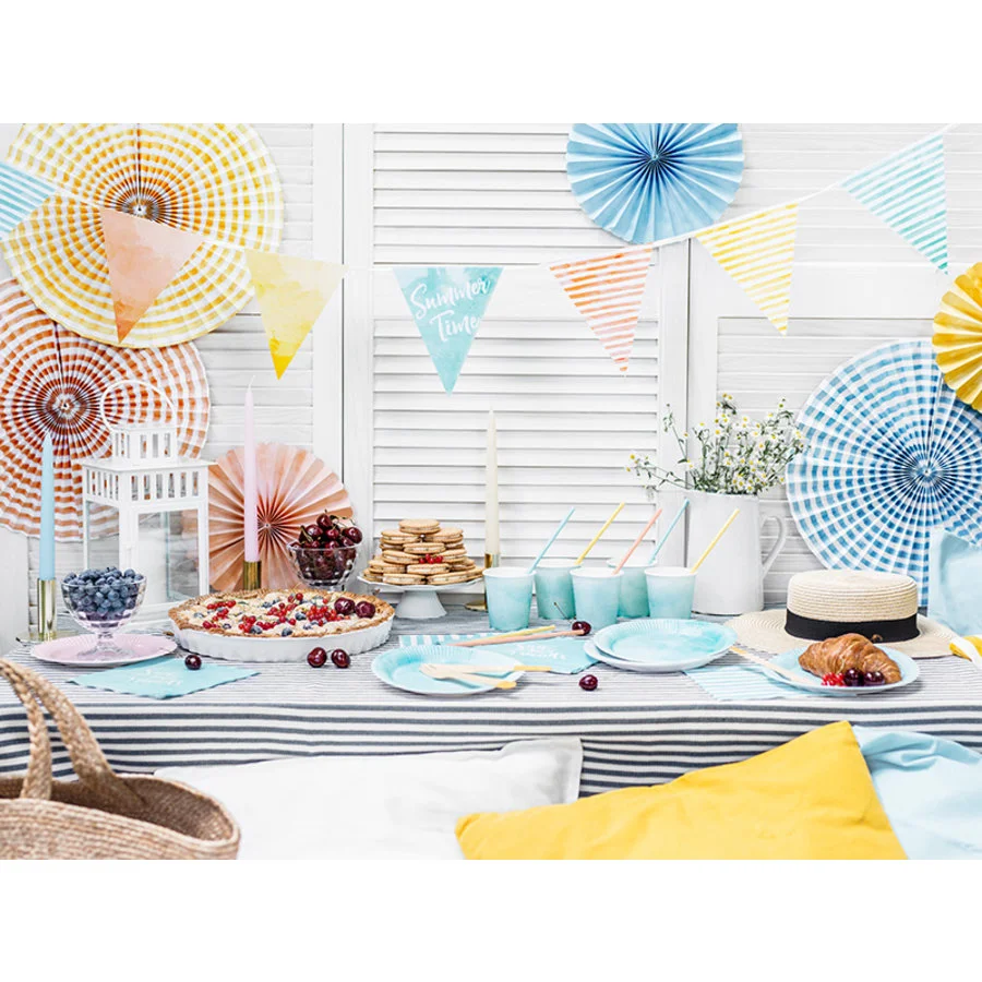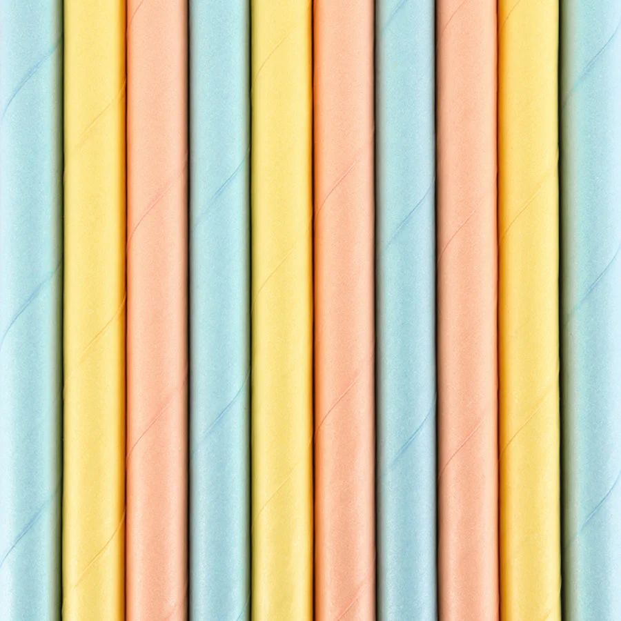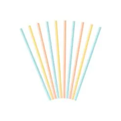 Een pakje met 10 stevige papieren rietjes in frisse zomerse pastelkleuren.