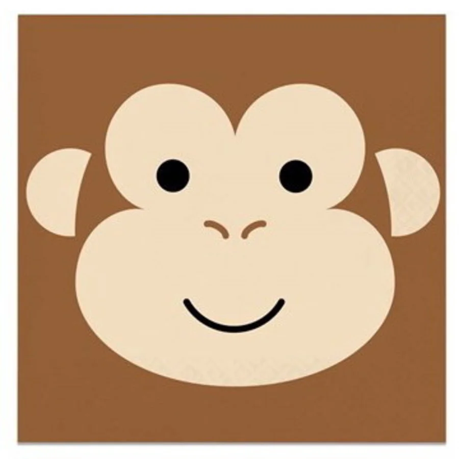 Een pakje servetten bedrukt met een apenkop. Afmeting: 32.7cm x 32.3cm. Superleuk voor een kinderverjaardag in het thema Jungle en Safari.