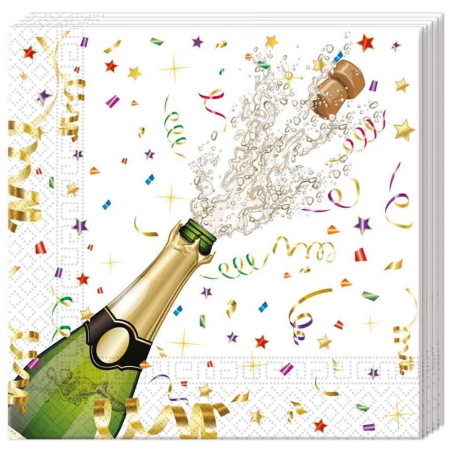 Een pak met 20 servetten voor als je iets te vieren hebt. Afmeting: 33cm x 33cm. Perfect voor oud en nieuw, verjaardag of ander themafeest.