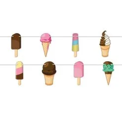 Een slinger met lekkere ijsjes. Super origineel! Afmeting: 18cm x 137cm. Leuk voor langs het raam of aan de wand tijdens een tropisch (zomer) themafeest.