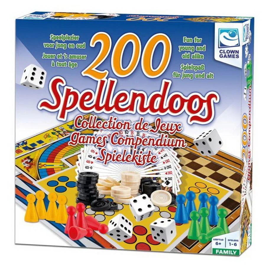 Speelplezier voor jong en oud! 200-delige Clown Games spellendoos, waarmee je vanzelfsprekend 200 verschillende spellen kunt spelen! Het verveelt nooit met alle klassiekers in één doos: ludo, backgammon, dammen, paardenrennen en vele andere bord-, dobbel- en kaartspellen. Inhoud: – 6 spelborden – 16 pionnen – 5 dobbelstenen – 30 damstenen – 32 spelkaarten – spelregelboekje. Voor 1-6 spelers en vanaf 6 jaar.
