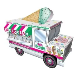 Een schitterende gedetailleerde 3D ijsco wagen om op tafel te zetten ter decoratie op een zomerfeest. Eenvoudig in elkaar te zetten. Afmeting: 26cm x 20cm.