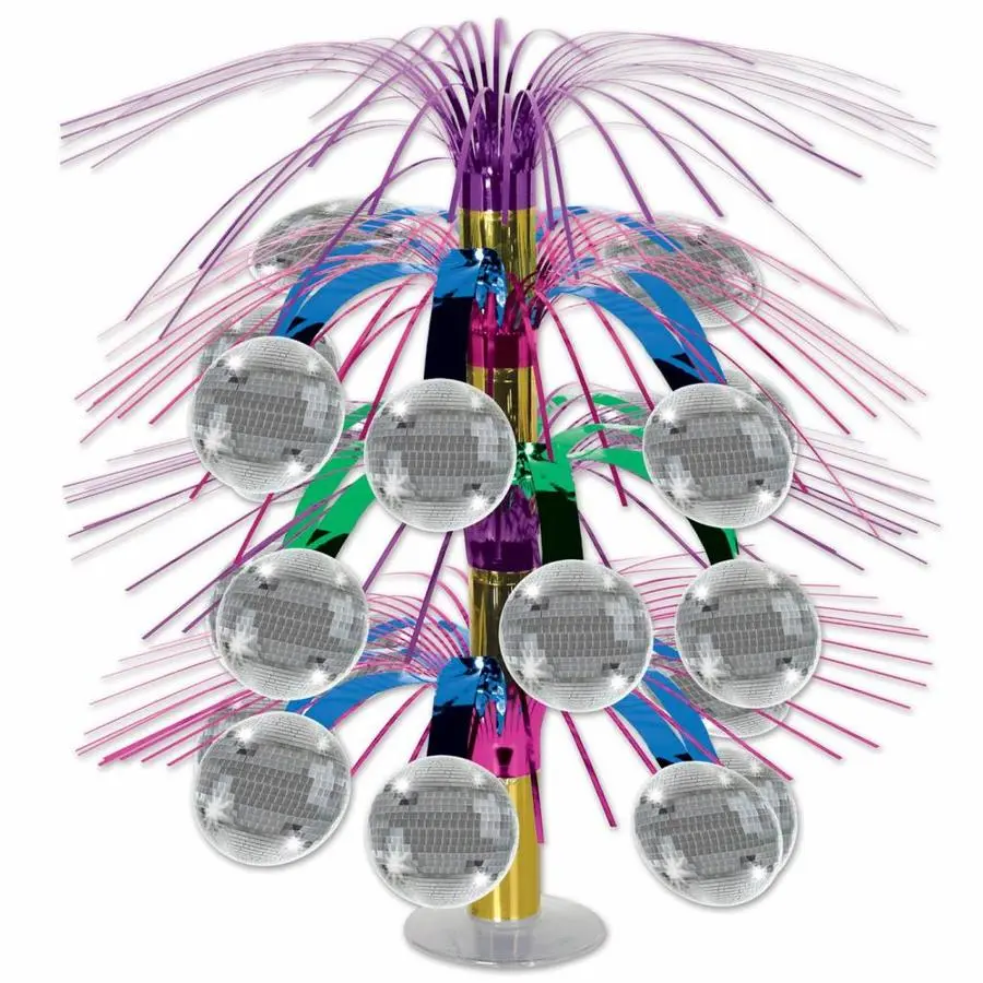 Een prachtige luxe tafeldecoratie met discoballen. Mooi op tafel tijdens een disco themafeest. Lengte: 46cm.