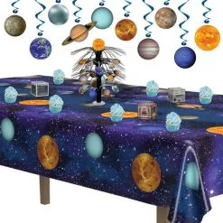 Een plastic tafelkleed bedrukt met een sterrenhemel en planeten. SUPER COOL! Afmeting: 137cm x 274cm. Bekijk ook onze collectie Knutselspullen, Spellen en Puzzels voor nog meer plezier!