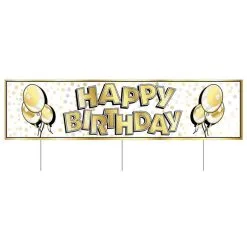 Afmeting: 30cm x 119cm. Super cool voor een verjaardag. Voor elke leeftijd! Kleur: wit met goudkleurige opdruk.Â