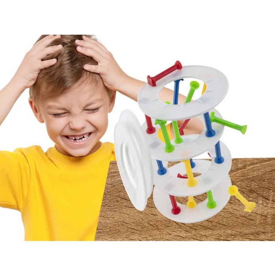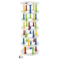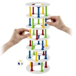 Vallende Toren is een spannend evenwicht spel. Bouw de toren en neem één voor één een pilaar weg. Maar zorg er voor dat de toren niet omvalt. Hou jij je zenuwen in bedwang? Degene die de toren laat vallen verliest het spel. Hoogte 60cm. Van 2 tot 4 spelers. Geschikt voor kinderen vanaf 5 jaar.