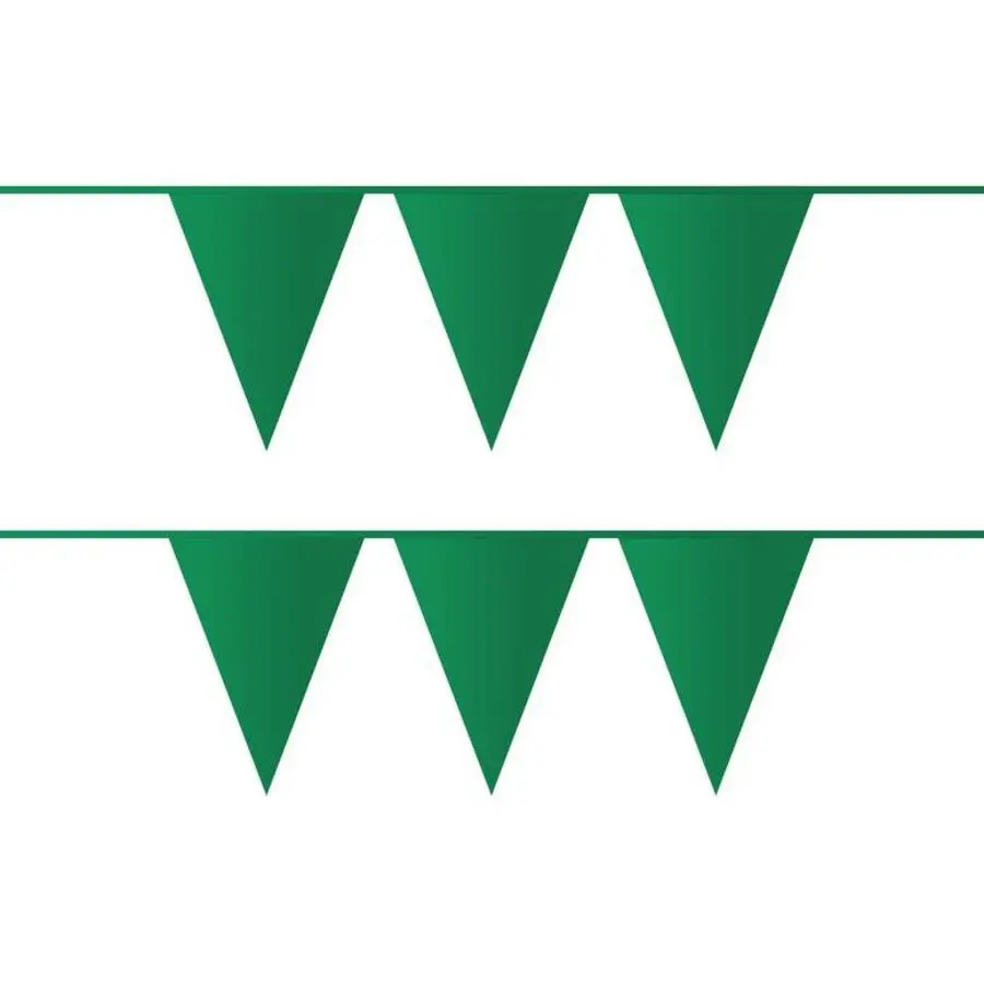 Stevige vlaggetjes slinger donkergroen gemaakt van plastic. De lengte van deze donkergroene vlaggenlijn is 10 meter. Deze slinger is ook geschikt voor buiten. De vlaggetjes aan de vlaggenlijn zijn 20×30 cm en er zitten 15 vlaggetjes op een lijn. Stevige kwaliteit maar super voordelig door bulk inkoop. Deze vlaggetjes zijn ideaal voor een feestje in huis maar je kunt er ook gemakkelijk een hele straat mee versieren. De vlaggetjes zijn aan beide zijden gekleurd. Let op! De vlaggetjes hangen verder uit elkaar dan op de foto.