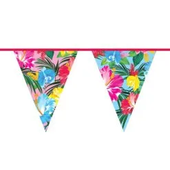 Een prachtige vlaggenlijn bedrukt met tropische bloemen. Lengte: 6 meter. Mooie versiering voor een tropisch zomerfeest.