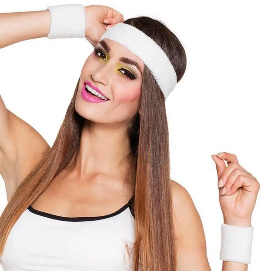 Een set met 3 zweetbandjes. Kleur: wit. Leuk detail voor eighties party`s!